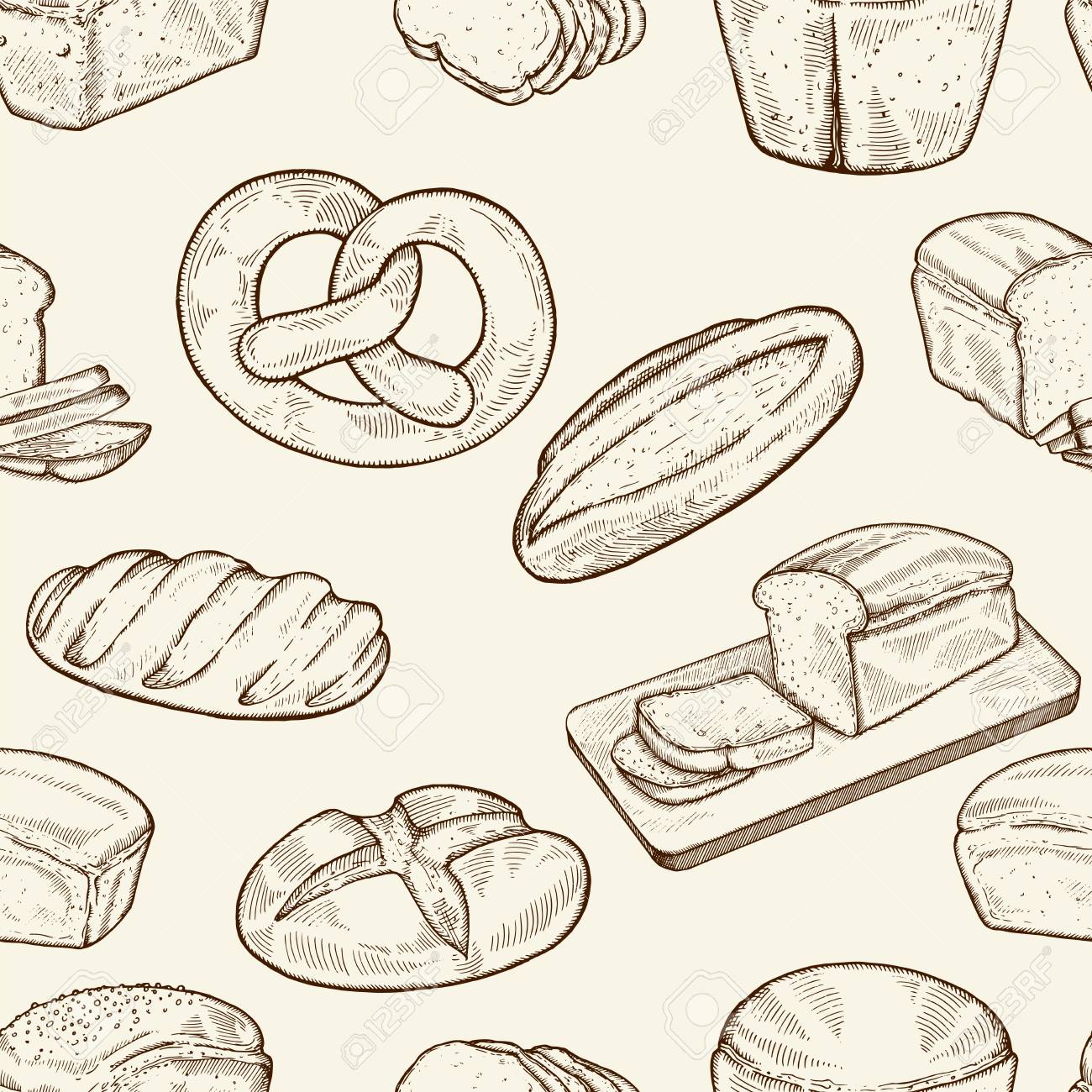 Seamless Food Sketch Pattern Hand Drawn Bread And Bakery Background Royalty Free Cliparts Vectors And Stock Illustration Image